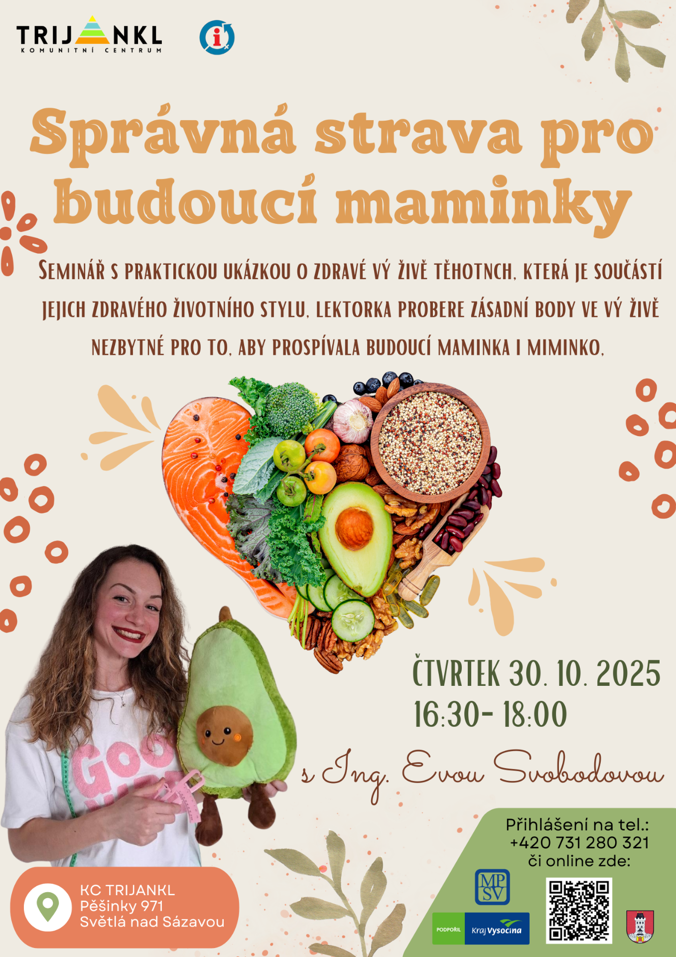 🥑 Seminář s praktickou ukázkou o zdravé výživě těhotných, která je součástí jejich zdravého životního stylu, lektorka probere zásadní body ve výživě nezbytné pro to, aby prospívala budoucí maminka i miminko.