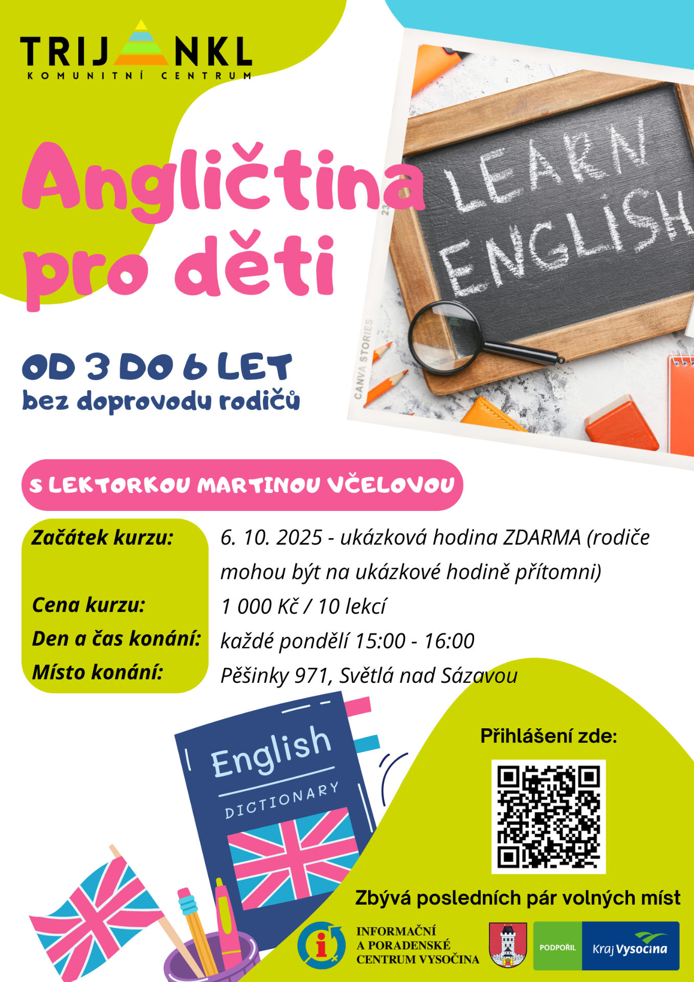 Aktuálně je kurz Angličtina pro děti plně obsazen. Nicméně, pokud máte o tento kurz zájem, kontaktujte nás. Evidujeme zájemce a budeme vás informovat o případném uvolnění místa nebo o vypsání dalších termínů.