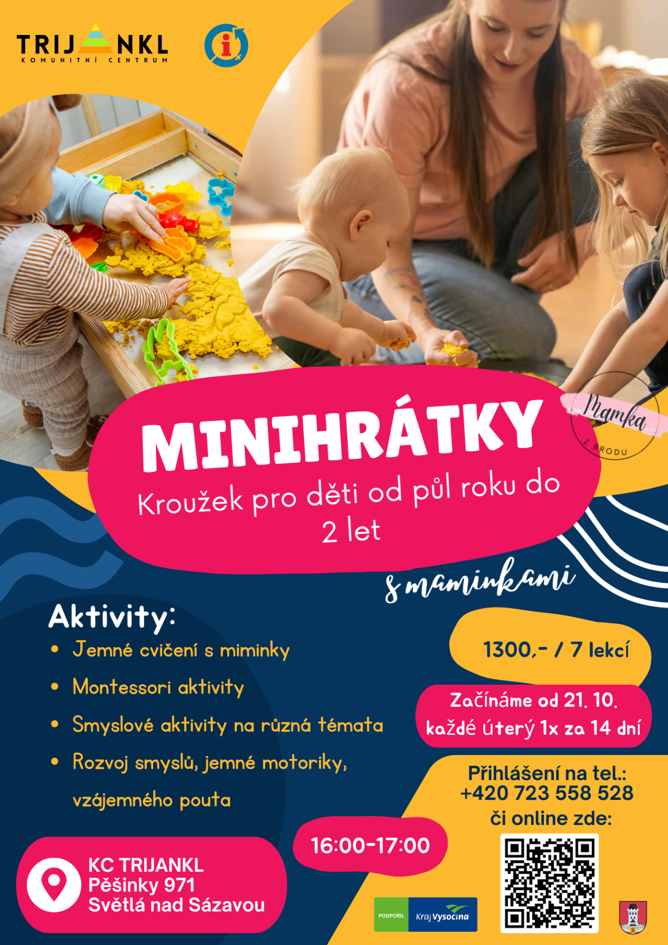 Zveme vás a vaše nejmenší do světa objevů! Náš kroužek je ideálním úvodem do smyslového hraní a Montessori aktivit, speciálně přizpůsobených pro miminka a děti do 2 let. Každá lekce zahrnuje jemné cvičení s miminky a maminkami, doprovázené hravými říkankami, které podpoří rozvoj smyslů, motoriky a vzájemného pouta. Přijďte si užít společné chvíle plné radosti a objevování!